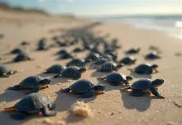 Hatchling turtles imprint on their birth beach and can return decades later to nest in the same area.